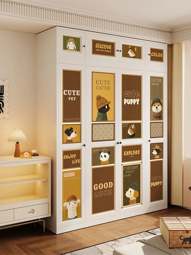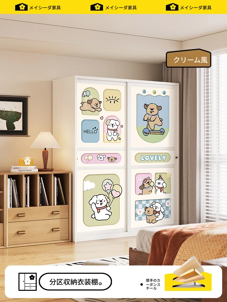 美世达の可愛い犬のキャラクター付きスライドドアクローゼット - スタイリッシュなデザインで、子供部屋にぴったりの収納キャビネット!丈夫なスチール製で、安心してお使いいただけます。子供たちの夢を形にする、楽しい収納スペースをお楽しみください!