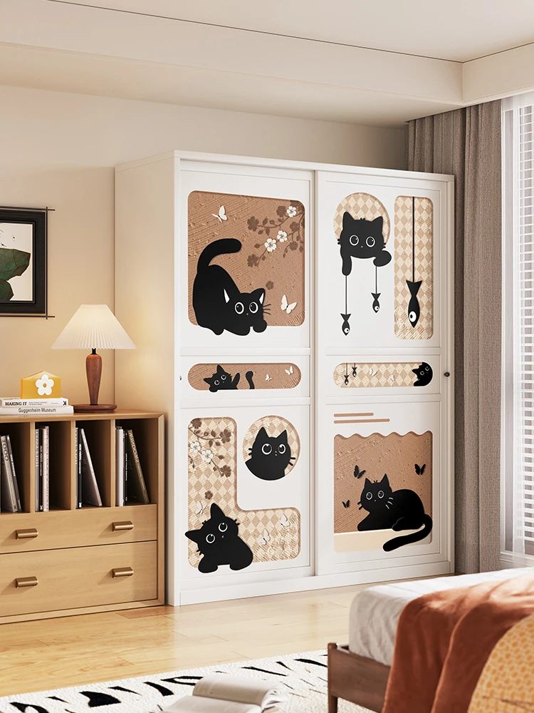 メイシーダ ラインドッグ 子供用クローゼット ウェアハウス 多バイン メタル カーボンスチール製 ホルムアルデヒドフリー スライドドア収納キャビネット - お部屋を可愛く演出する理想的な収納アイテム!