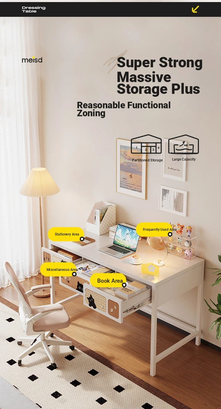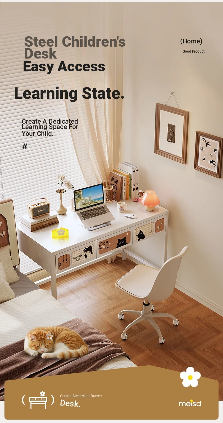Meisida Cream Wind Steel Writing Desk - 1.2m Student Study Table for Home, Living Room & Office - Versatile and Stylish Workstation