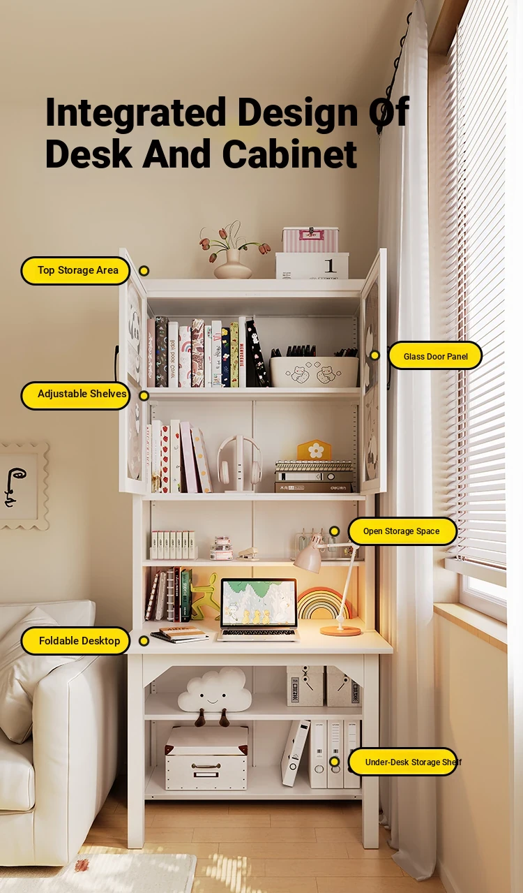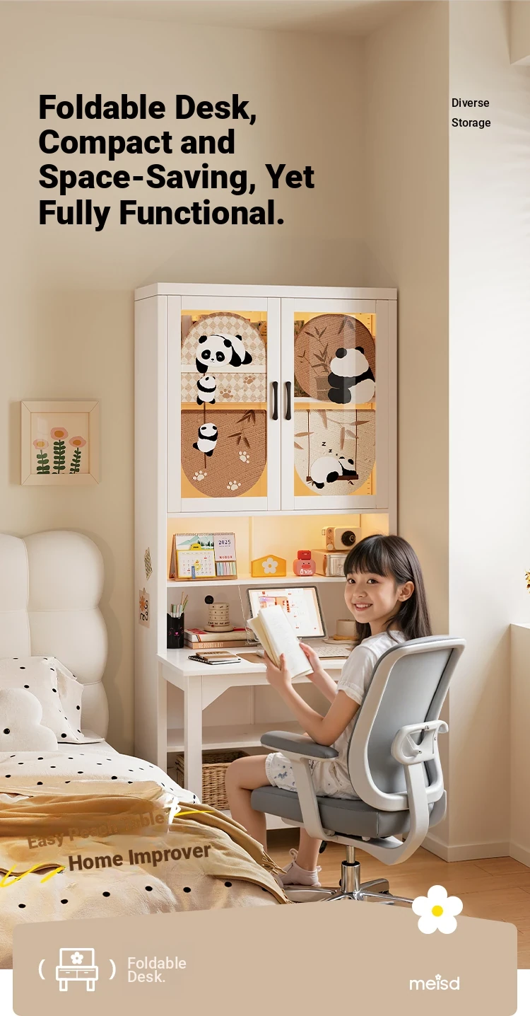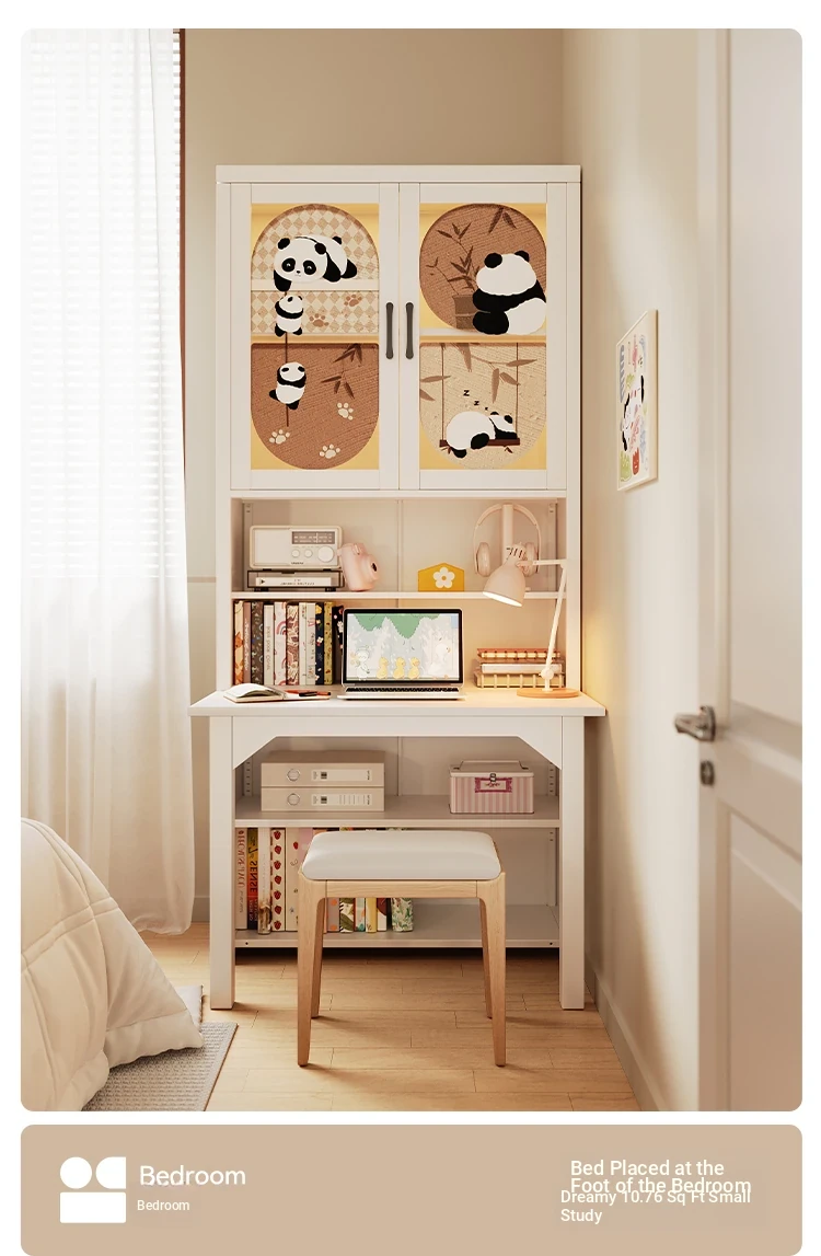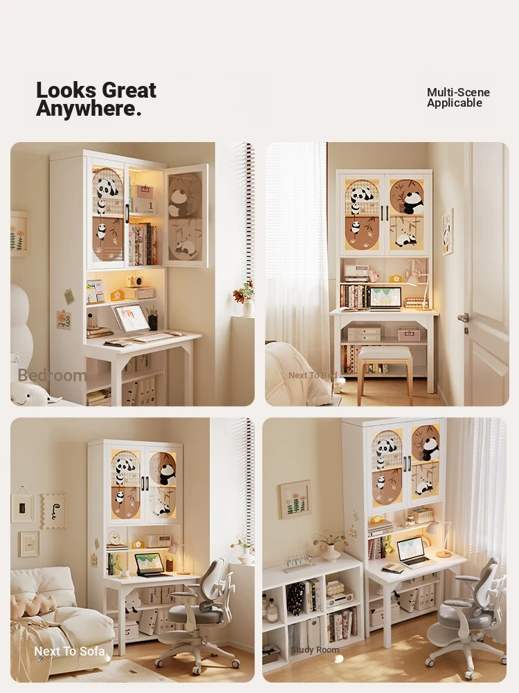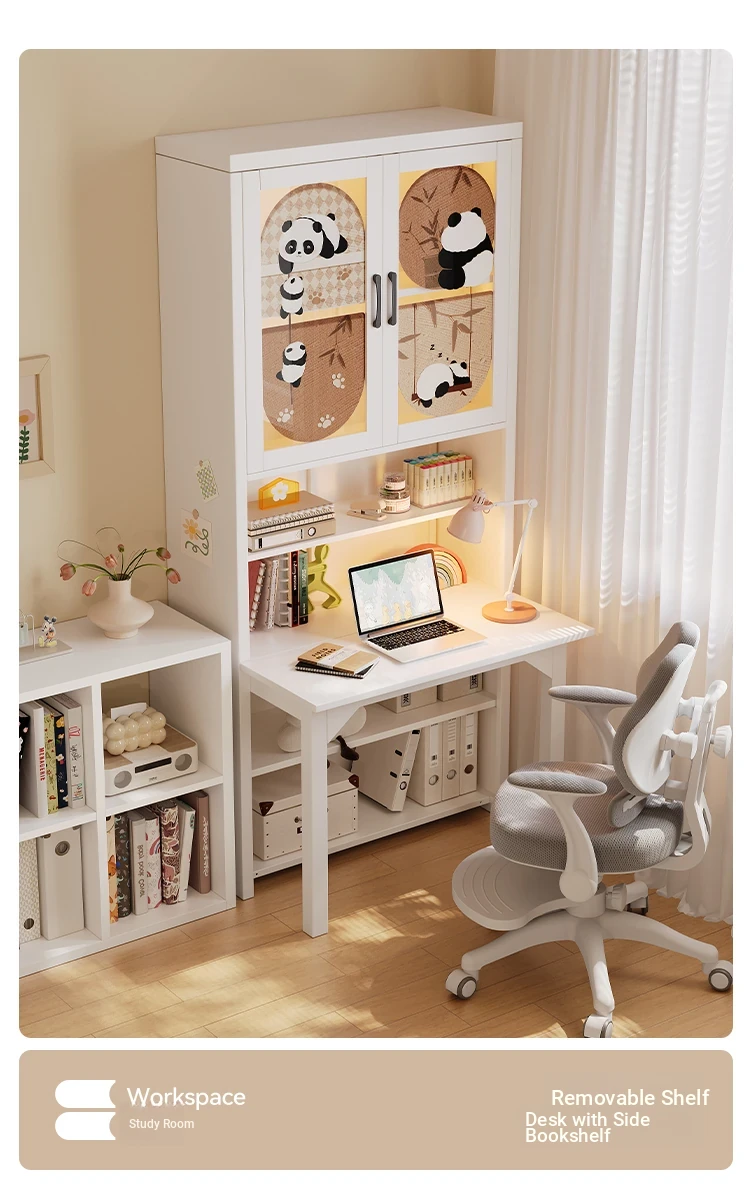[Cute Panda] 35.43in Desk Cabinet (Length 90*Height 78.74in)((0% Methanol I with Glass Cabinet Door))
