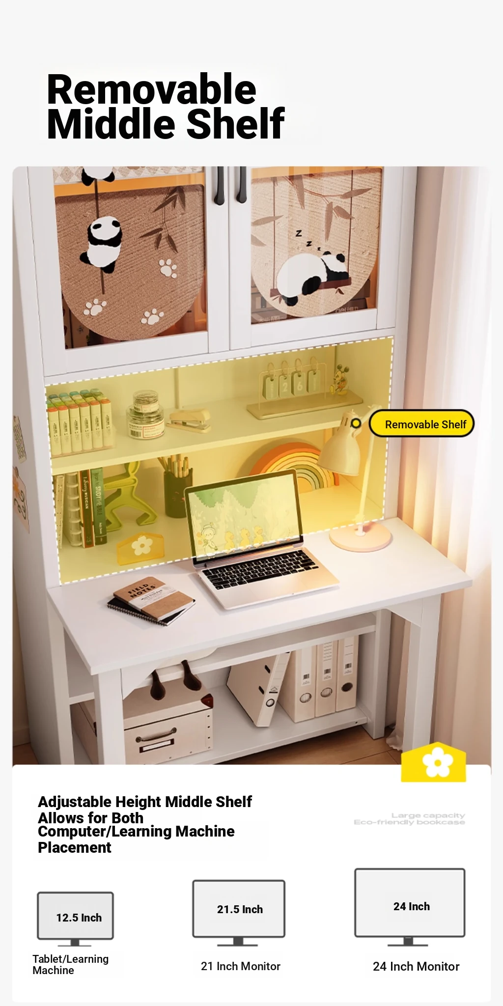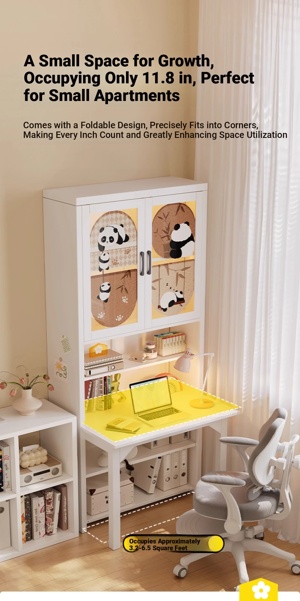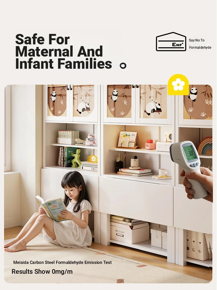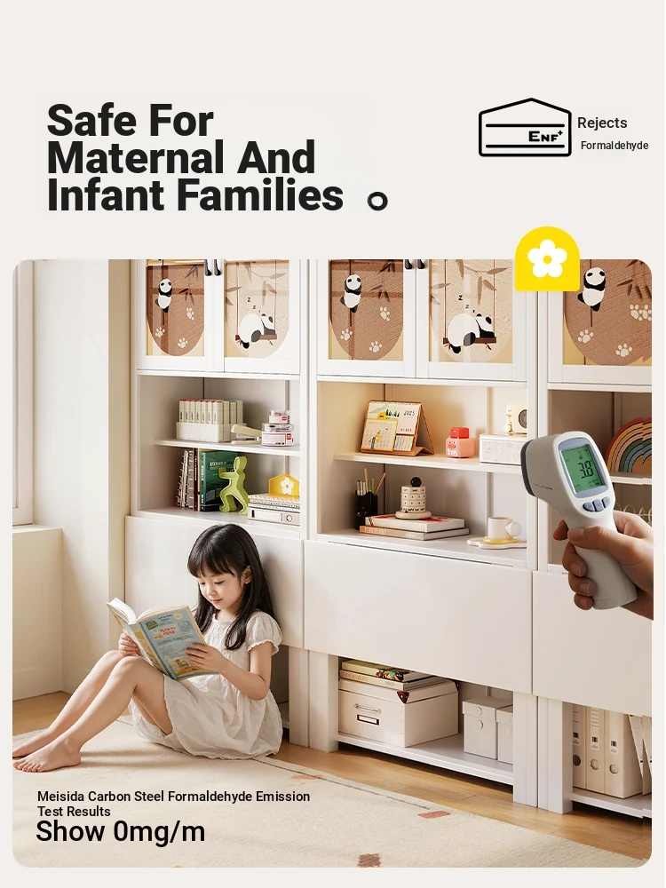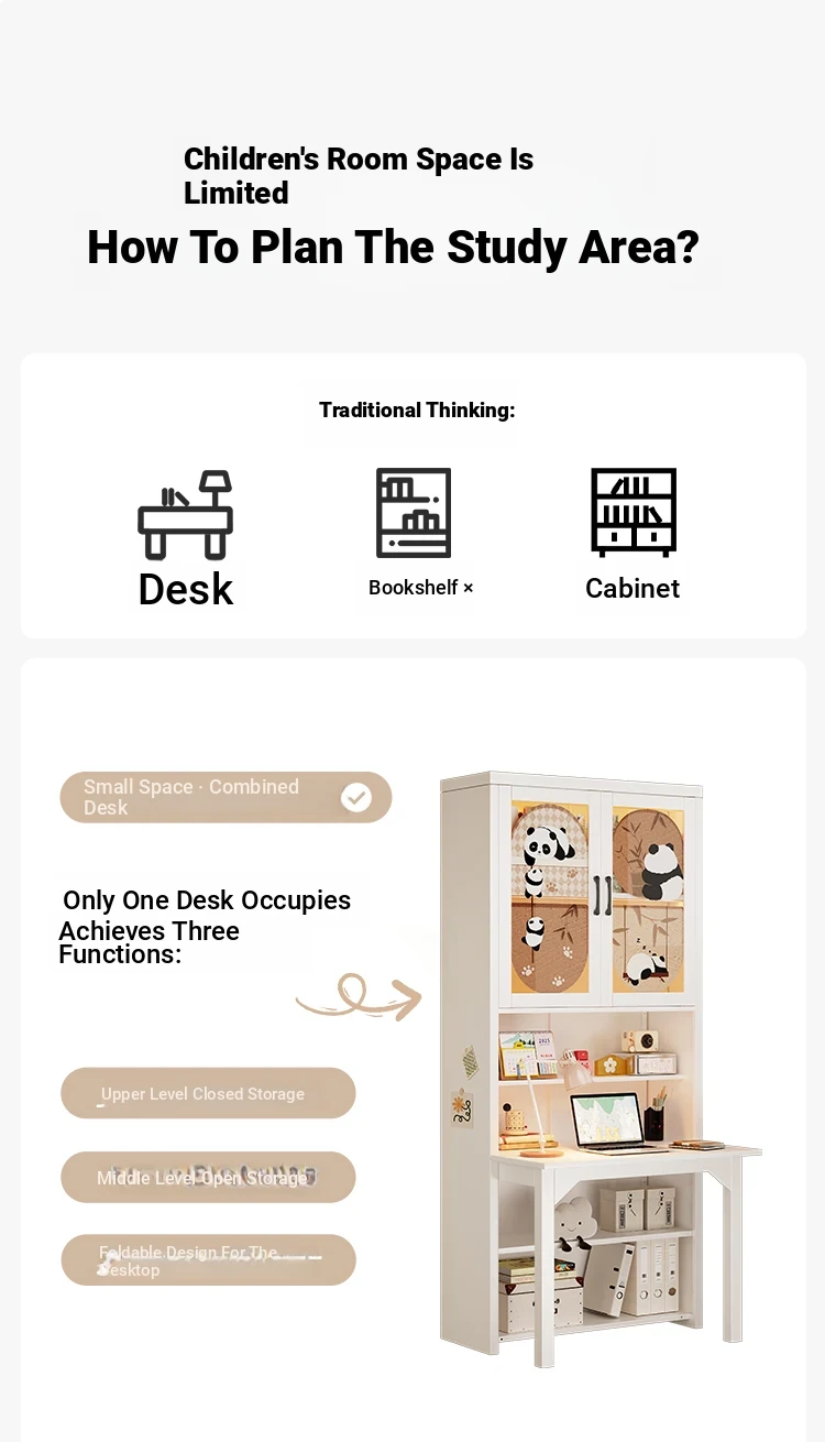 [Cute Panda] 35.43in Desk Cabinet (Length 90*Height 78.74in)((0% Methanol I with Glass Cabinet Door))