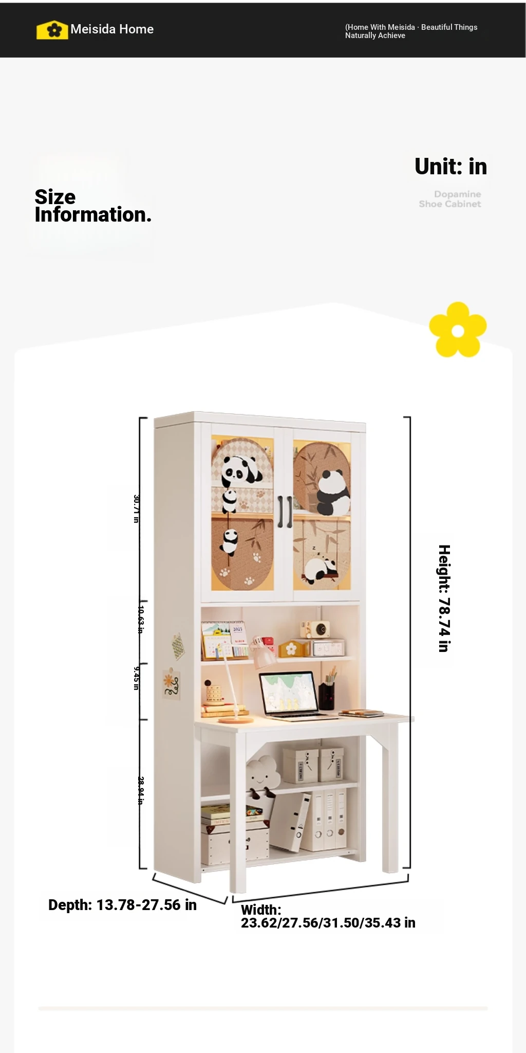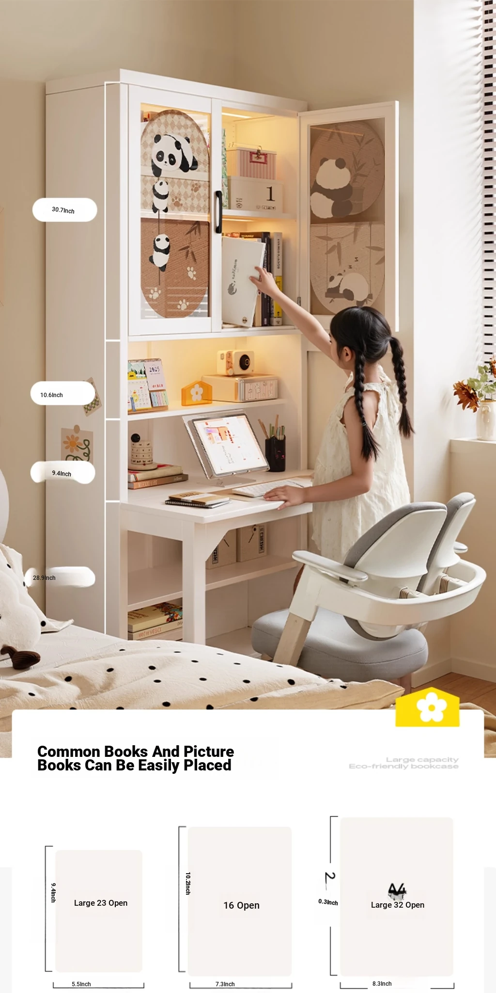 [Cute Panda] 31.50in Desk Cabinet (Length 80*Height 78.74in)((0% Methanol I with Glass Cabinet Door))