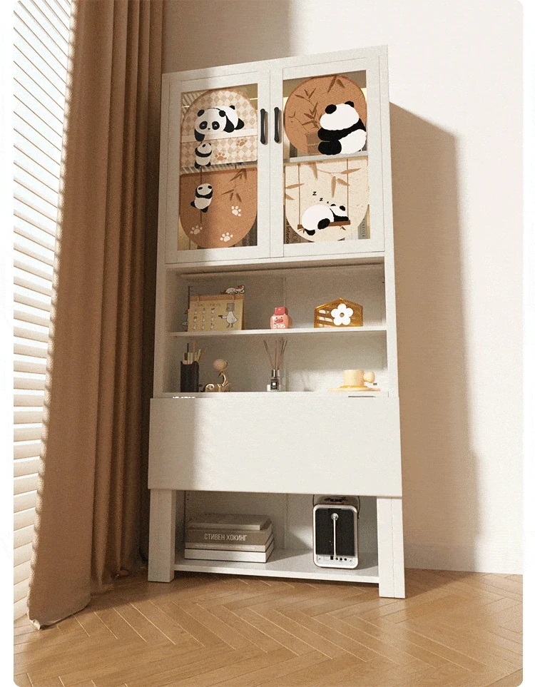 [Cute Panda] 27.56in Desk Cabinet (Length 70*Height 78.74in)((0% Methanol I with Glass Cabinet Door))