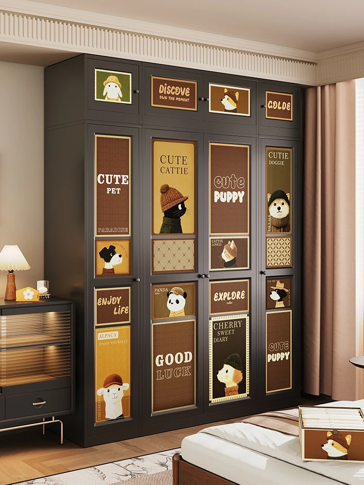 Meisida Creamy Windbreaker Style Cartoon Dog Sliding Door Steel Metal Storage Cabinet for Children's Bedroom – Stylish & Durable Organizing Solution!