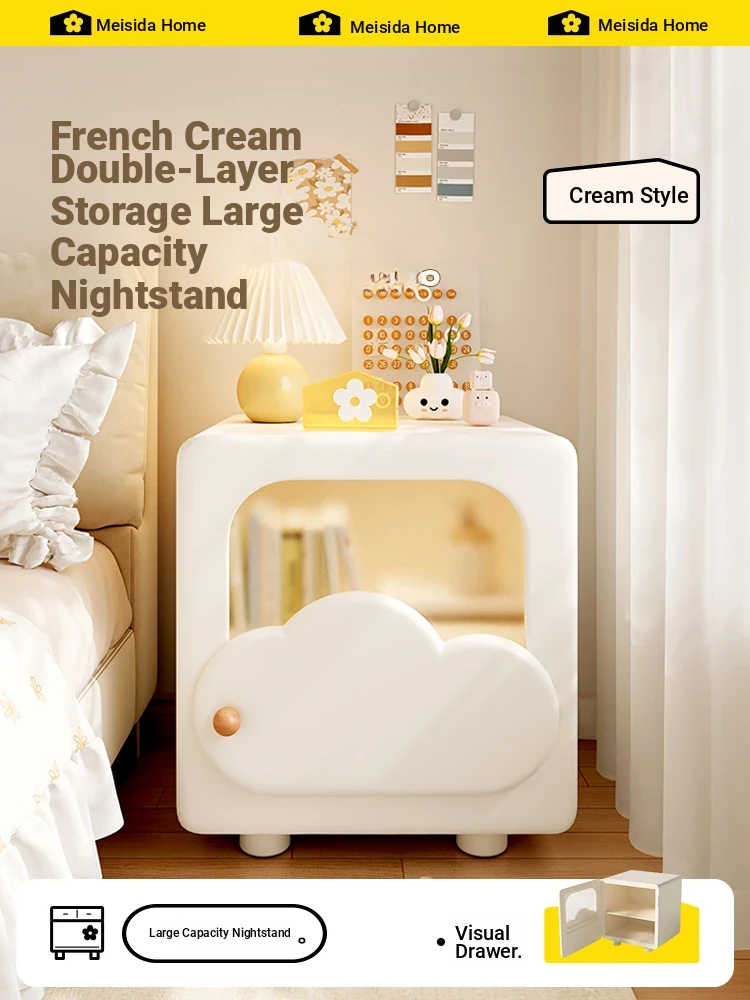 Meisida French Cream-Style Bedside Table - Creative Design Solid Wood Nightstand for Home Bedroom, Unique and Chic Nightstand for Kids Room