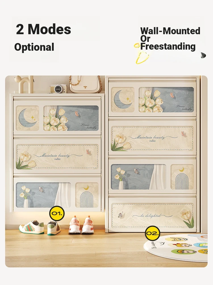 Meisida Ultra-Slim Shoe Cabinet - Creamy Style, 15cm Wide, Wall-Mounted Design, Perfect for Narrow Entryways, Durable Steel Flip-Top Storage for Home Use