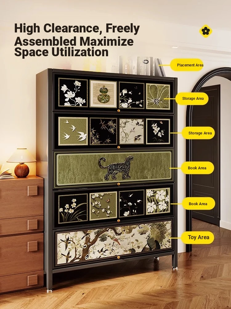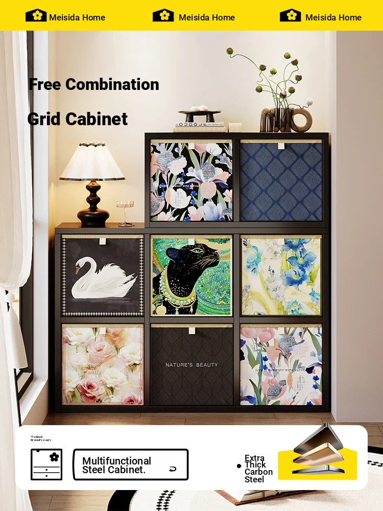 Meisida Vintage-Style Luxury Living Room Partition Cabinet - Elegant Steel Storage Unit with Drawers, Kaleck Grid Design for Entryway Organization
