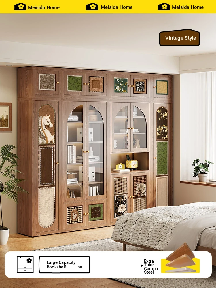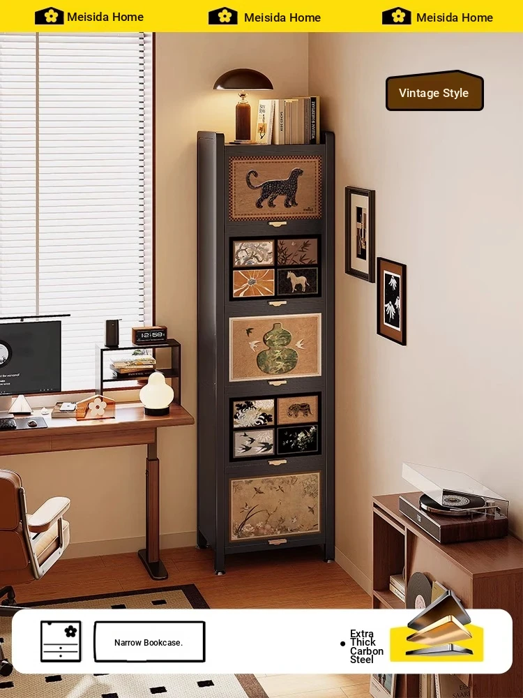 Meisida French Vintage Floor Bookshelf - Steel Storage Cabinet with Modular Wall-Mounted Design for Flexible Organization and Stylish Display