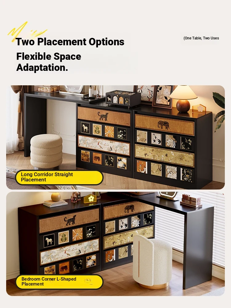 Meisida Vintage Carbon Steel Makeup Vanity with Integrated Dresser - Retro Style for Master Bedroom, Perfect for Bed End, Elegant Iron Design, New Arrival