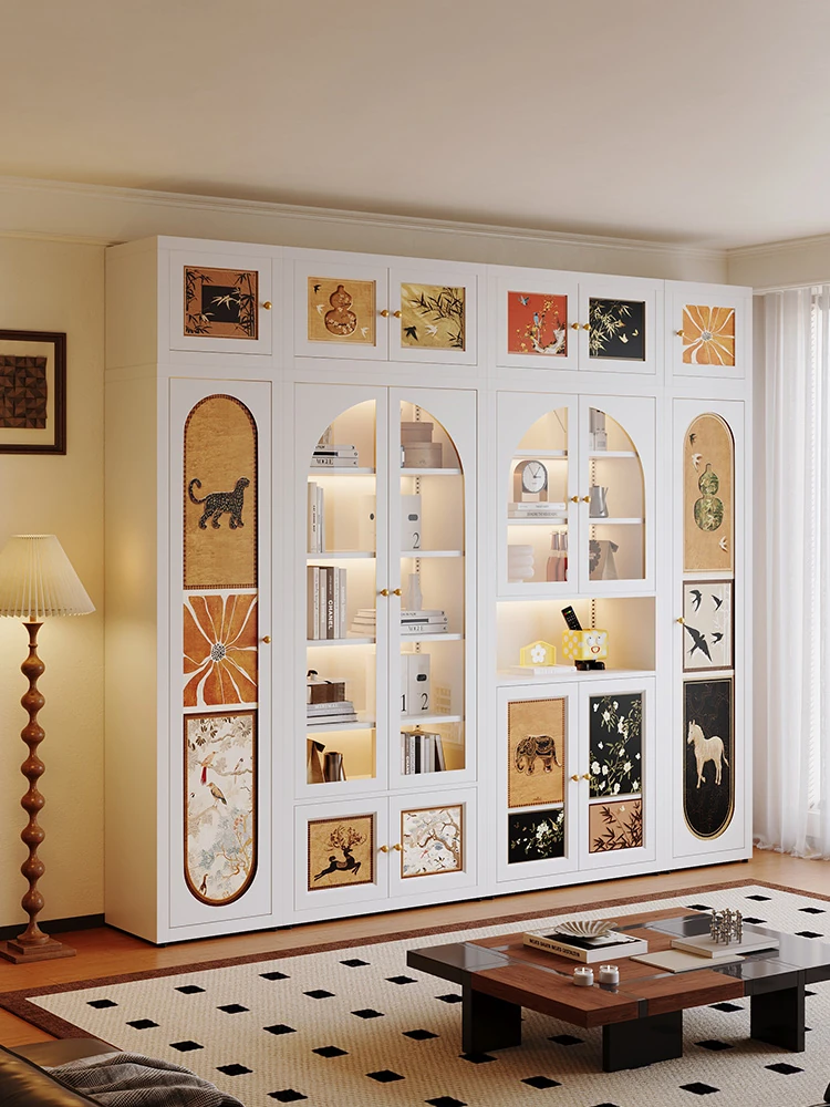 Meisida Creamy French Arch Bookshelf - Stylish Steel Storage Cabinet for Living Room, Floor-standing Organizer, Multi-functional Storage Solution