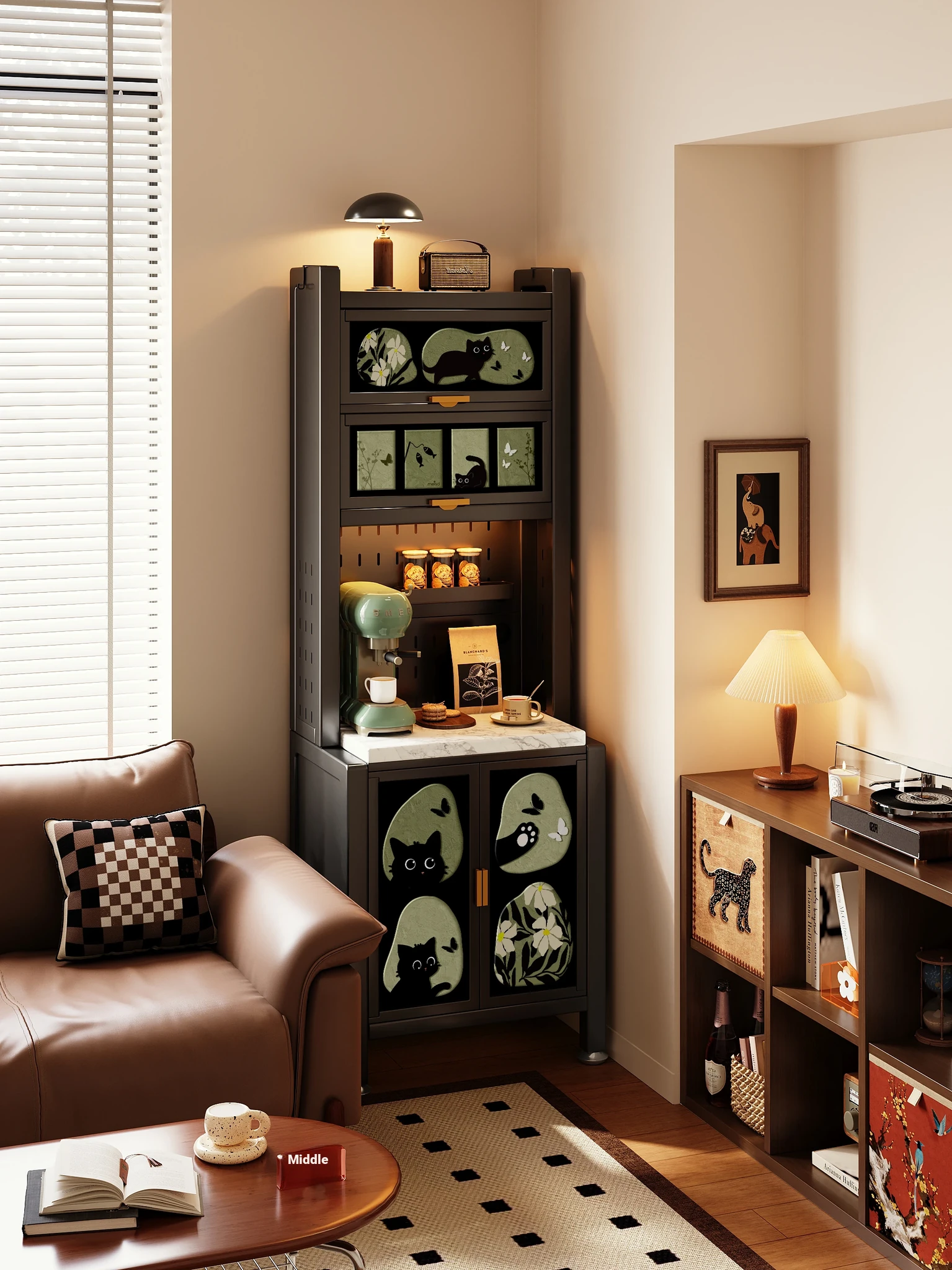 Meisida Vintage Carbon Steel Sideboard - Wall-Mounted Storage Cabinet with Iron Art and Leather Finish for Living Room, Perfect for Home and Kitchen Use
