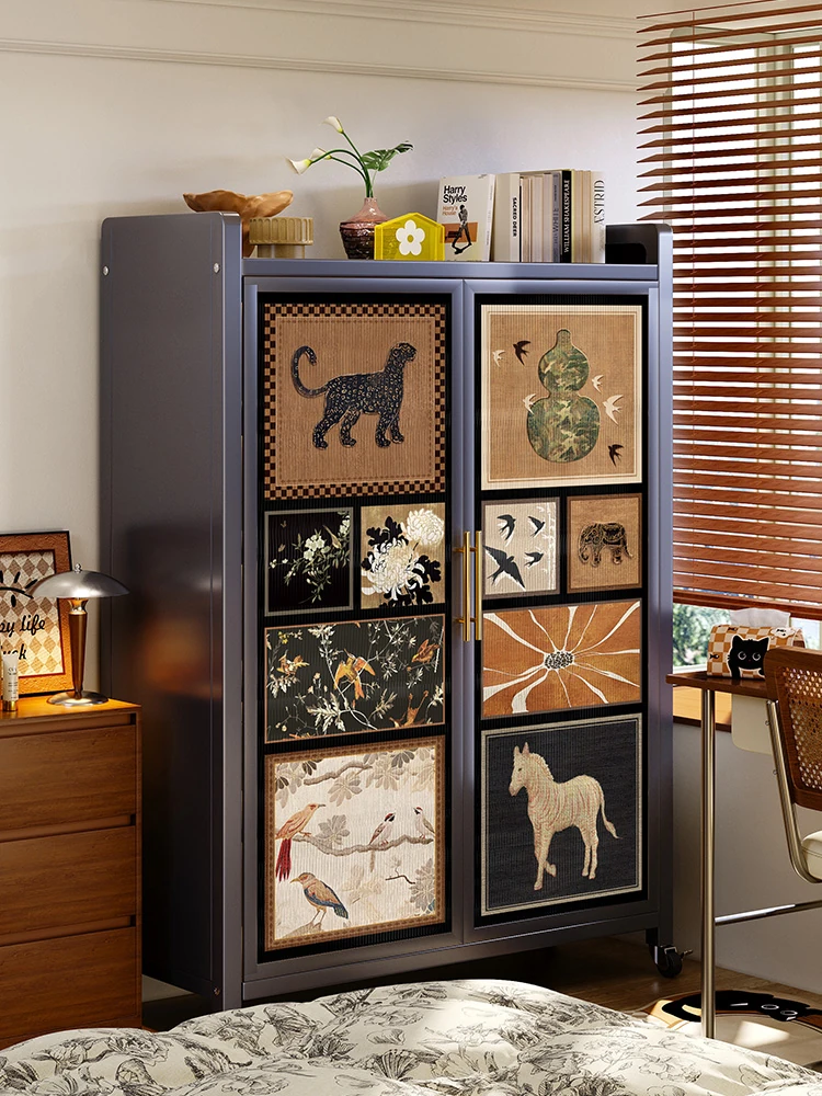 Meisida Vintage Style Metal Sliding Door Wardrobe - Compact Stainless Carbon Steel Assembled Storage Cabinet for Small Spaces - Elegant Retro Closet Solution