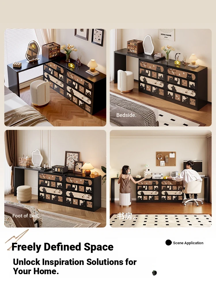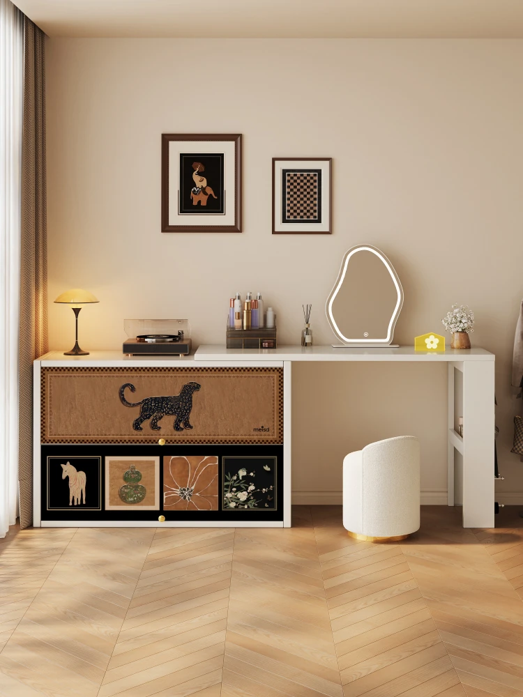 Meisida Expandable Makeup Vanity with Integrated Dresser - Stylish Steel Frame Mid-Century Bedroom Makeup Table and Storage Cabinet Combo
