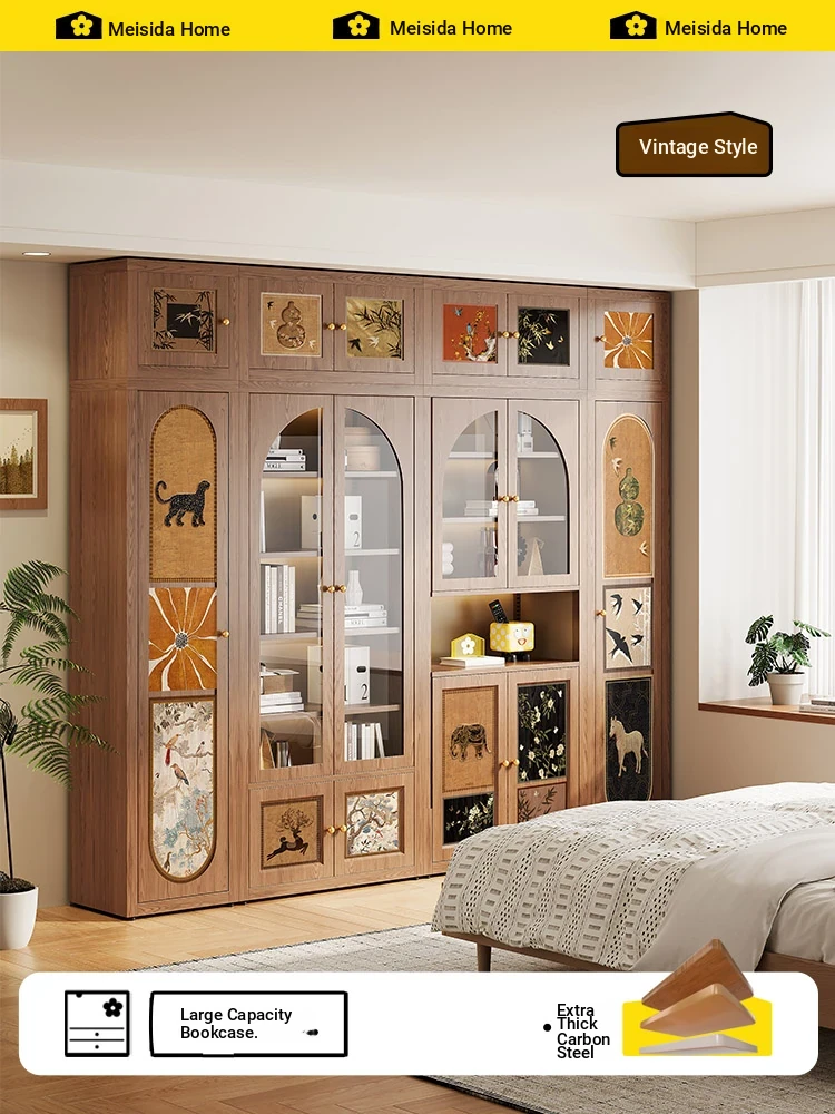 Meisida French-Style Wall-Mounted Bookshelf and Floor Storage Rack - Vintage Dustproof Iron Steel Bookcase and Storage Cabinet Combo