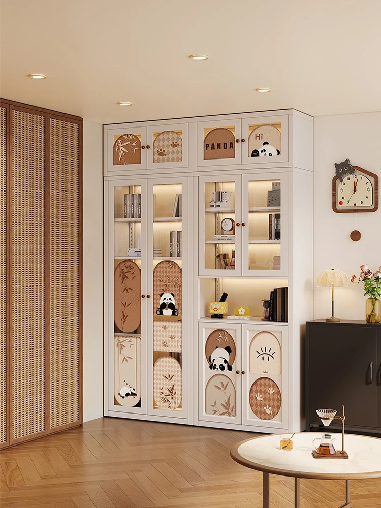 Meisida French Creative Panda Bookshelf - All-in-One Wall Storage Cabinet with Dustproof Glass Doors and Sturdy Steel Frame, Perfect for Organizing Your Space!
