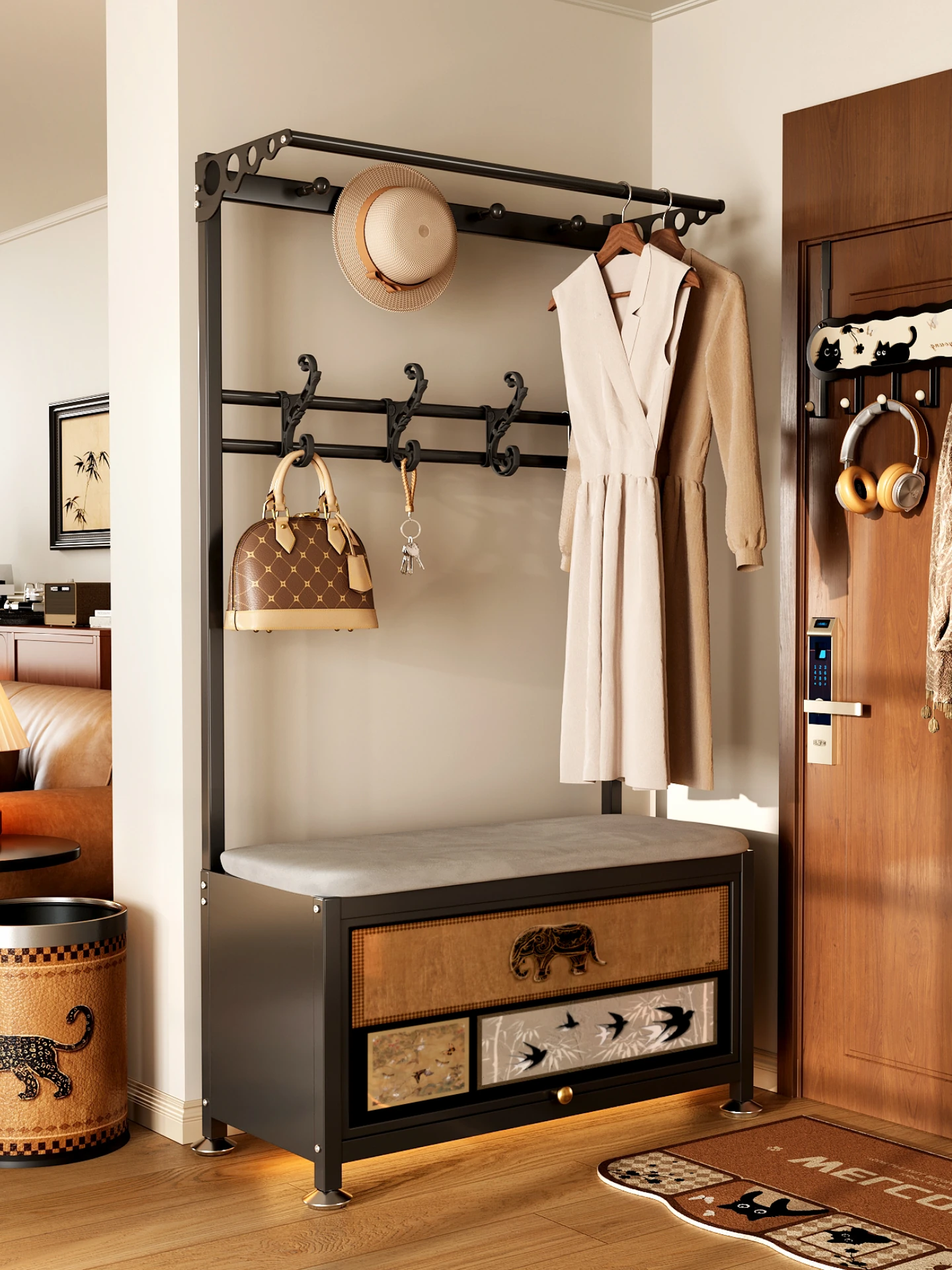 Mei Sida Luxury Shoe Changing Stool & Coat Rack - Elegant Floor-standing Storage Solution for Bedroom, Perfect for Clothing Organization and Accessories Display