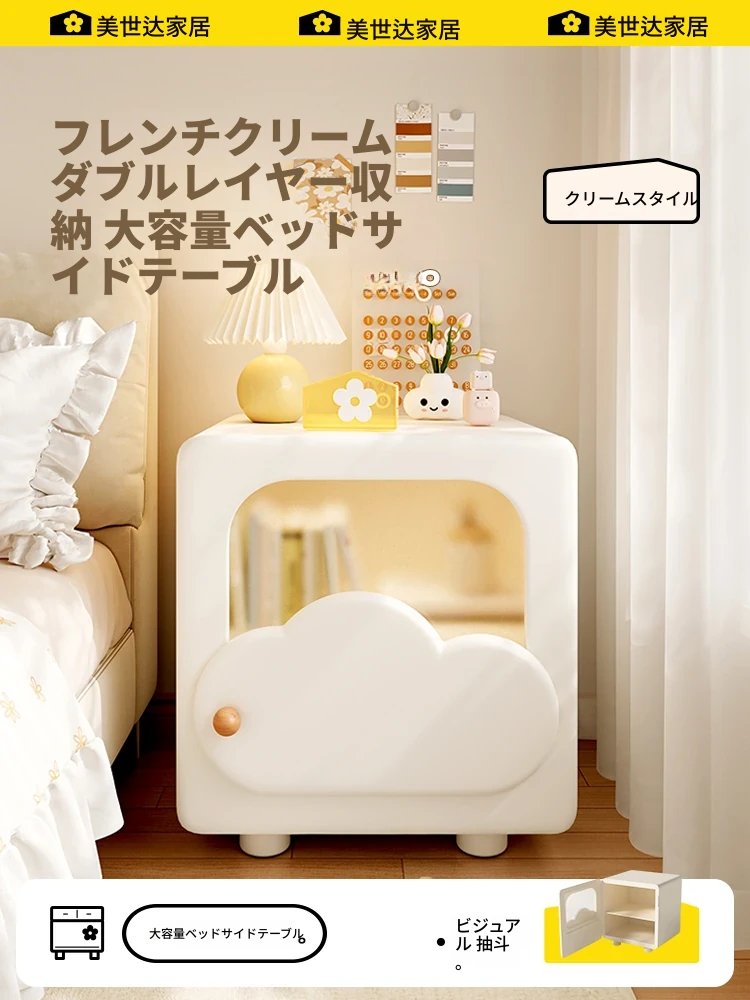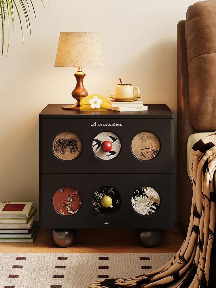 ミシダ 中古風の無垢材ナイトテーブル 家庭用寝室収納キャビネット 2025年新作 ラグジュアリー感あふれるサイドキャビネット