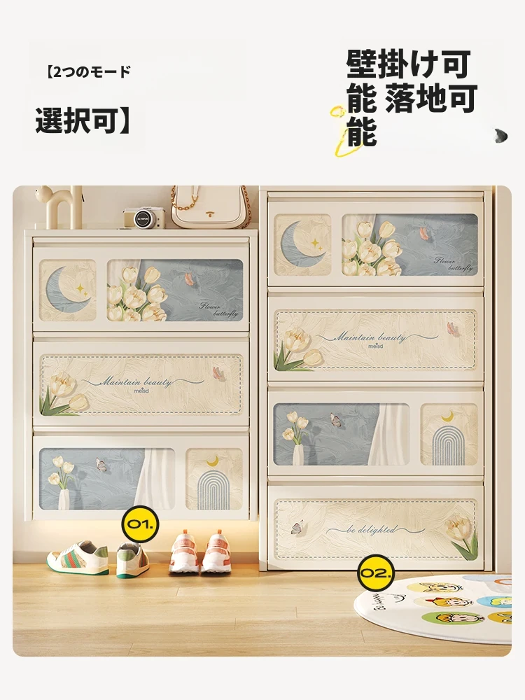 美世达超薄スリムシューズキャビネット - 家庭用、クリームカラー、玄関にぴったり!わずか15cmの幅で、鋼製の翻斗デザイン。狭いスペースでもスッキリ収納!おしゃれで機能的な玄関を実現します。