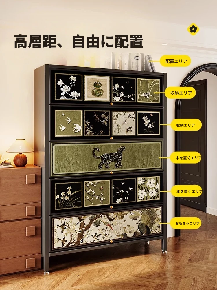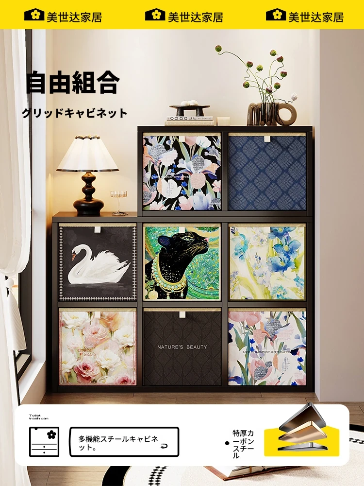 美世达の中古風リビング間仕切りキャビネット - 軽やかな高級感を演出する玄関収納棚、スチール製の収納キャビネット、引き出し付きカレッジスタイルの格子キャビネット。魅力的なデザインでお部屋をスタイリッシュに!
