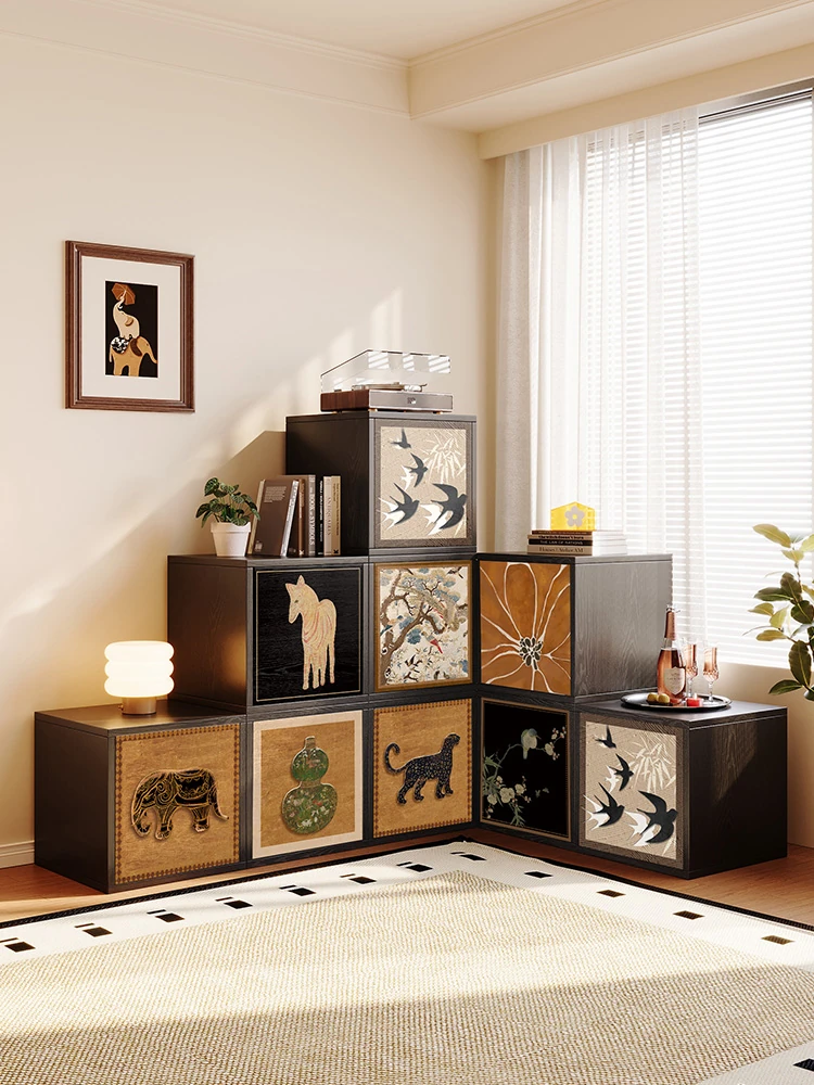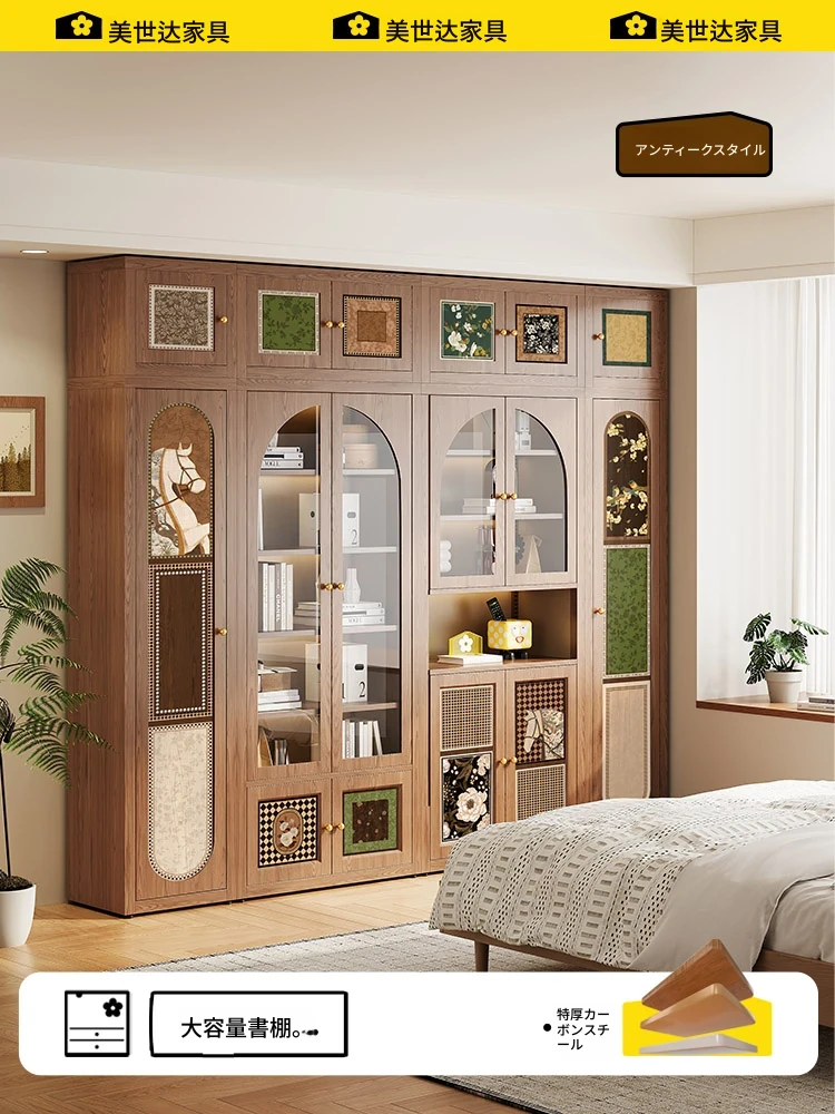 美世达のアンティークスタイルの格子キャビネット 自由に組み合わせ可能なフロア型収納ラック リビングや書斎にぴったりなレトロな収納書棚 デザイン性と機能性を兼ね備えた一品!