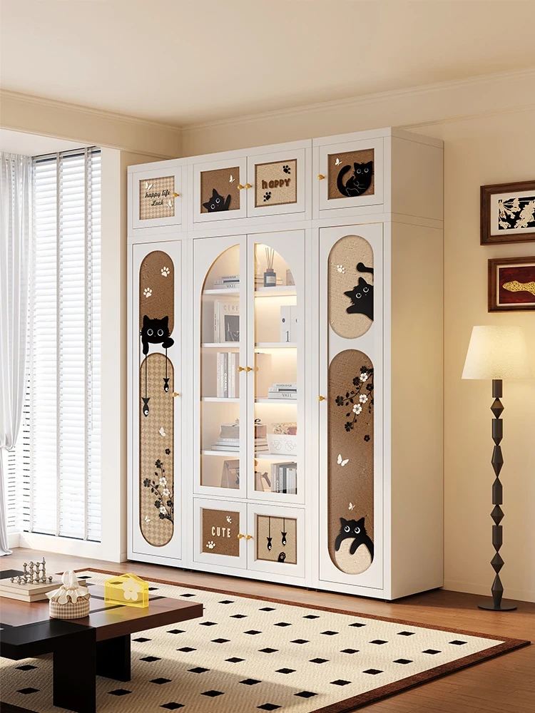 美世達カートゥーン猫咪本棚 - アンティーク風のガラス扉付き収納キャビネット、カーボンスチール製のメタルシェルフで、家の書斎にぴったり!おしゃれで機能的な収納を実現します。