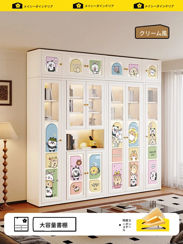 美世达クリーム風ブックキャビネット - ガラスドア付き・カートゥーンデザイン・アイアン製・多幸感をもたらすリビング用カーボンスチール製ホコリ防止本棚!おしゃれで機能的な収納で、心地よい空間を演出します。