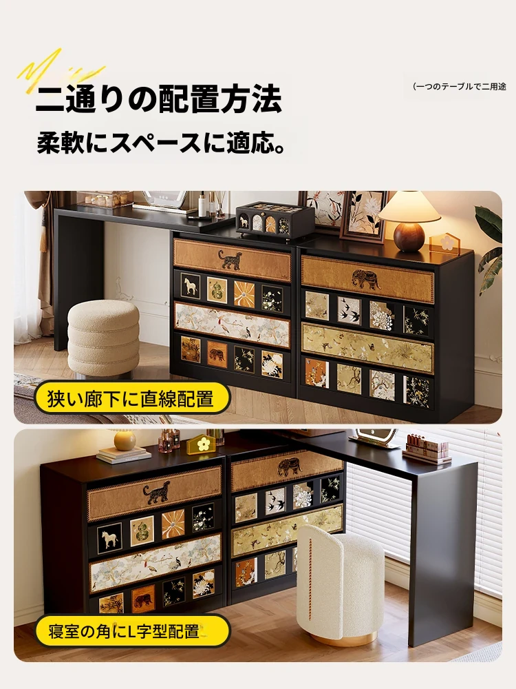 ミセダのカーボンスチール製ヴィンテージ風ドレッサー&チェスト一体型、レトロなデザインが魅力の主寝室用ベッドサイドアイアン化粧台新作登場!