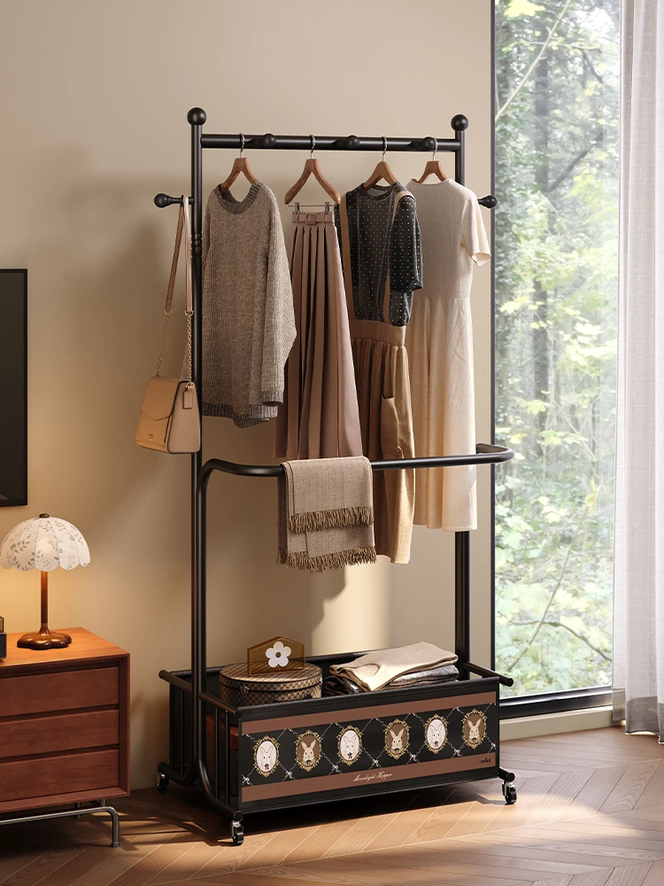 美世达のヴィンテージ風衣類収納ラック - おしゃれな壁掛けハンガーで、寝室をスッキリ整理!皮革製の収納ボックス付きで、コートや帽子もスタイリッシュに収納できる便利アイテム!