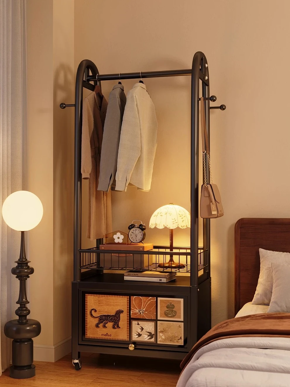 美世达多機能移動ハンガーラック – 家庭用、収納力抜群!ベッドサイドや衣服収納に最適な一体型デザインで、スペースを有効活用。おしゃれで便利なアイテムをお見逃しなく!