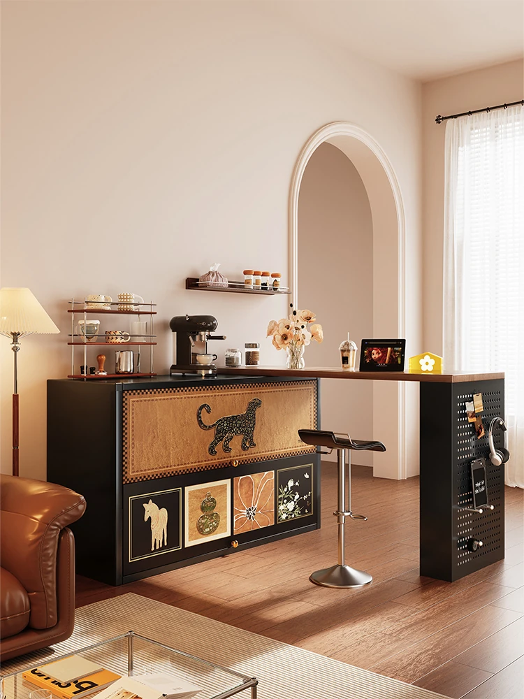 美世达のヴィンテージ風スチール製バー台テーブル - 家庭用リビングに最適!伸縮可能なバーカウンター&サイドボード一体型、壁掛けアイランドとしても使える多機能隔断。おしゃれで実用的な空間を演出します!