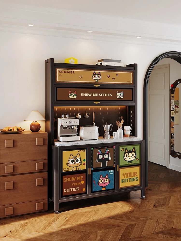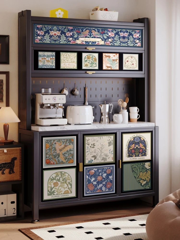 美世达アイアン製壁掛け収納キャビネット - 家庭用カーボンスチール製、リビングにぴったりのティーサーブキャビネット!スタイリッシュで実用的な収納スペースを提供します。