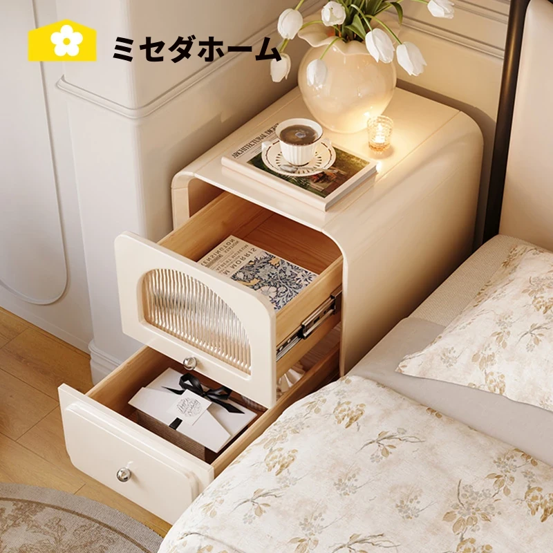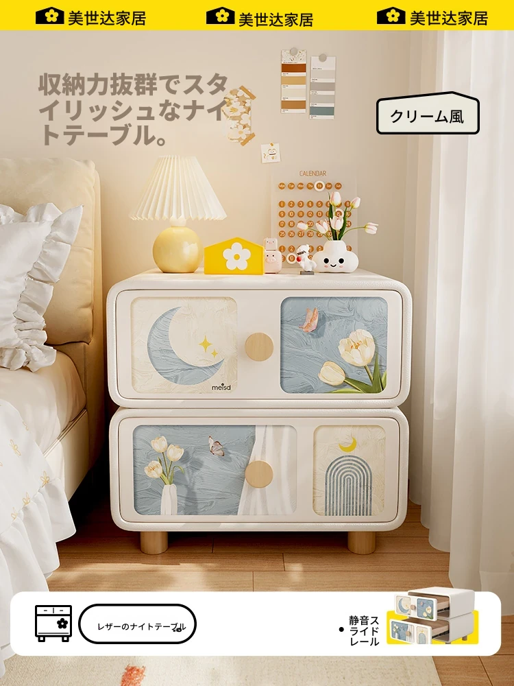 メイシダクリーム風ベッドサイドキャビネット 家庭用 子供部屋収納キャビネット 2025年新作 創造的フレンチスタイルサイドキャビネットで、可愛さと機能性を両立!