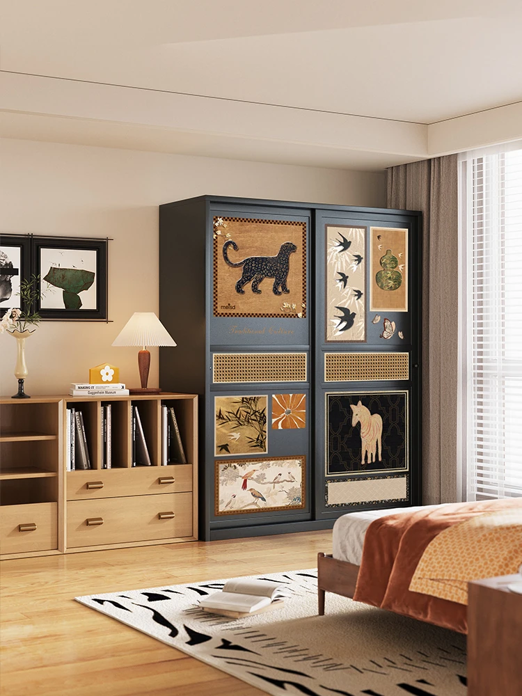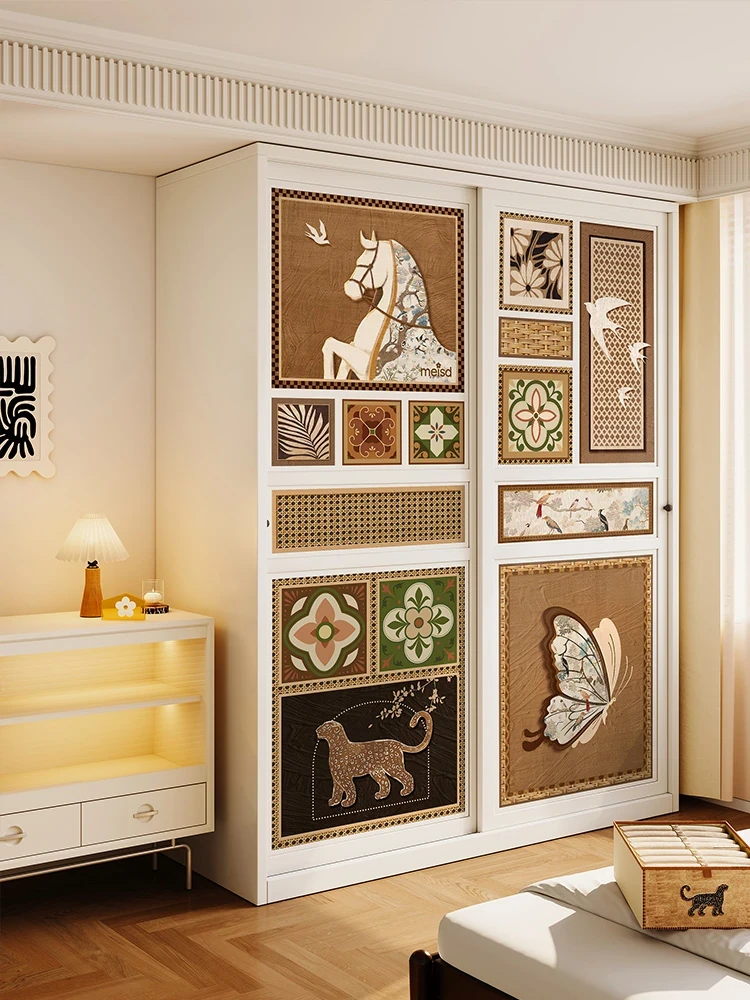 メイシダ フレンチスタイル ステンレス製 コンビネーション 押し引きドア クローゼット 家庭用 寝室用 小型住宅向け ヴィンテージ風収納キャビネット
