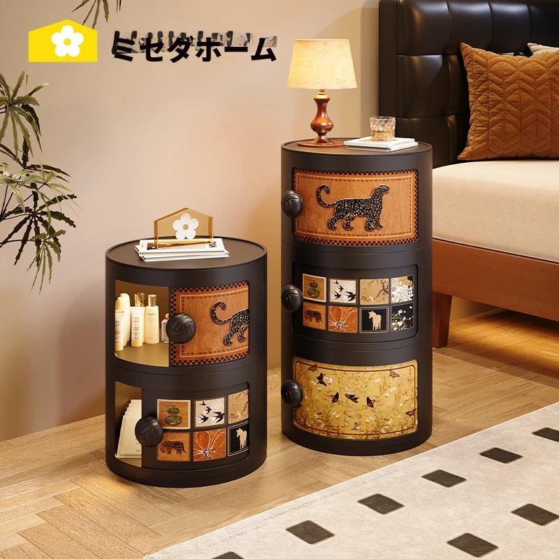 美世达のアンティーク風ナイトスタンド - 寝室にぴったりの収納力抜群のクリエイティブなサイドキャビネット。おしゃれで機能的な小型収納家具で、あなたの生活空間を一層魅力的に!