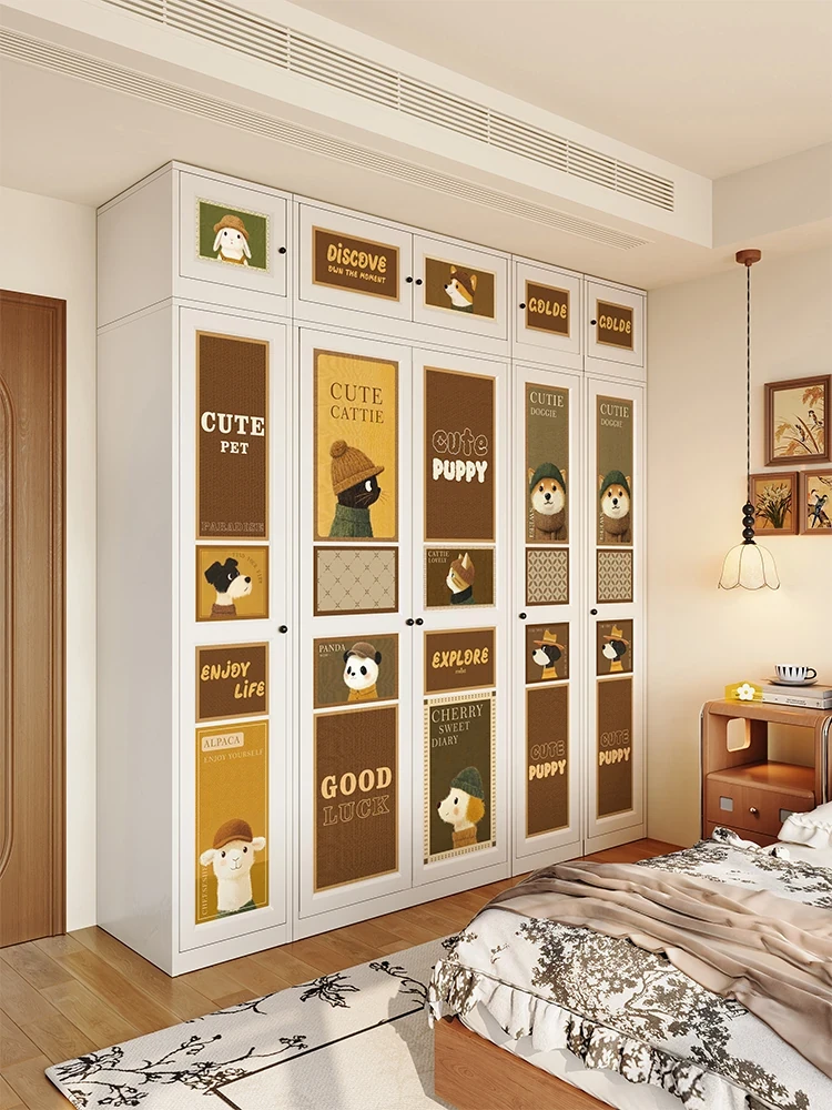 メイシーダ カートゥーンデザイン 子供用クローゼット 家庭用 ベッドルーム ステンレス製 組み立て式収納キャビネット フレンチスタイルのクローゼットで、お部屋を可愛く整理整頓!