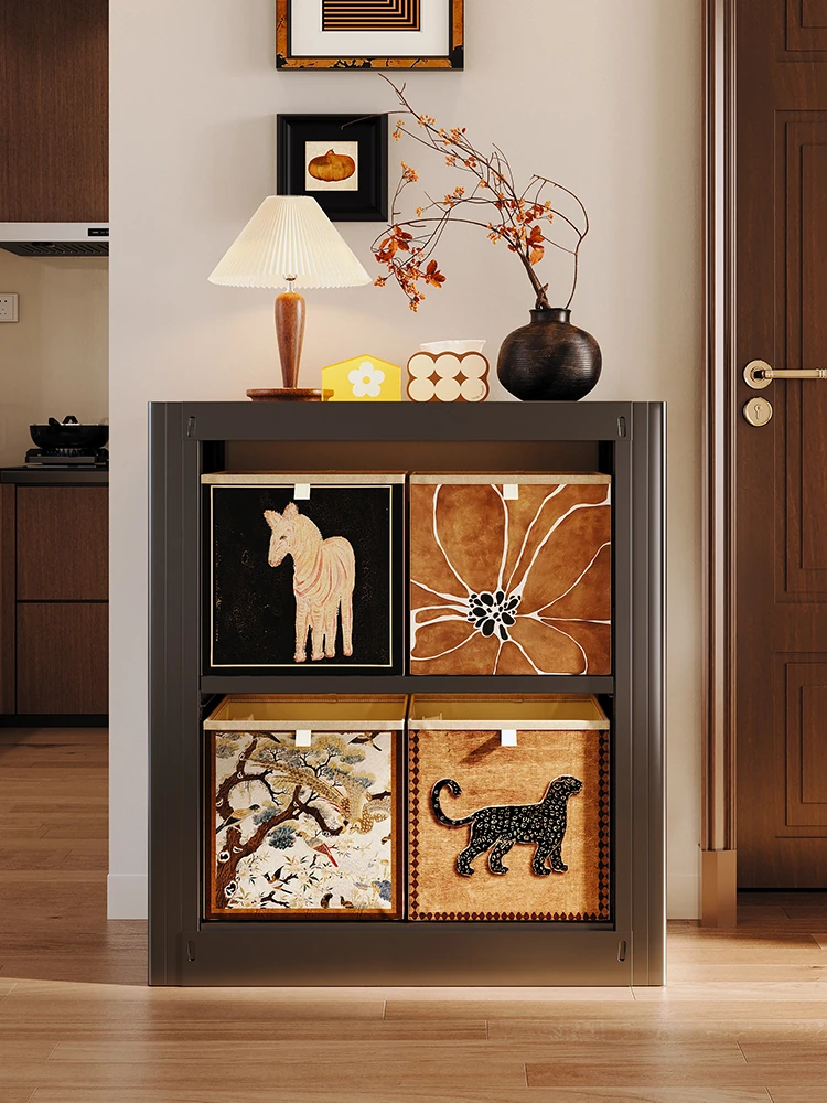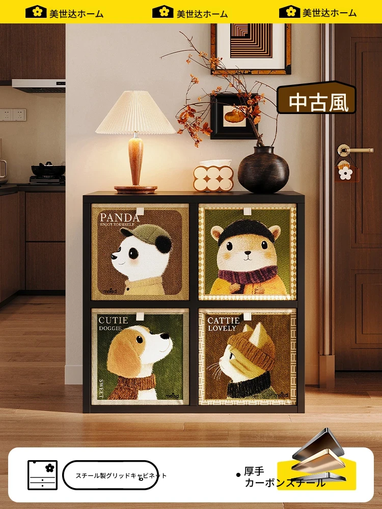 美世达玄関収納キャビネット 2025年新作!おしゃれなリビング間仕切りキャビネット、カラッケ格子デザインで収納力抜群!玄関正面にぴったりのスタイリッシュなアイテムです。