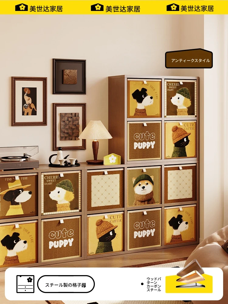 メイシーダ ラインドッグ 子供用クローゼット ウェアハウス 多バイン メタル カーボンスチール製 ホルムアルデヒドフリー スライドドア収納キャビネット - お部屋を可愛く演出する理想的な収納アイテム!