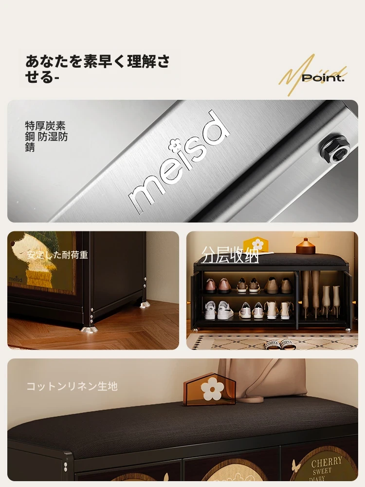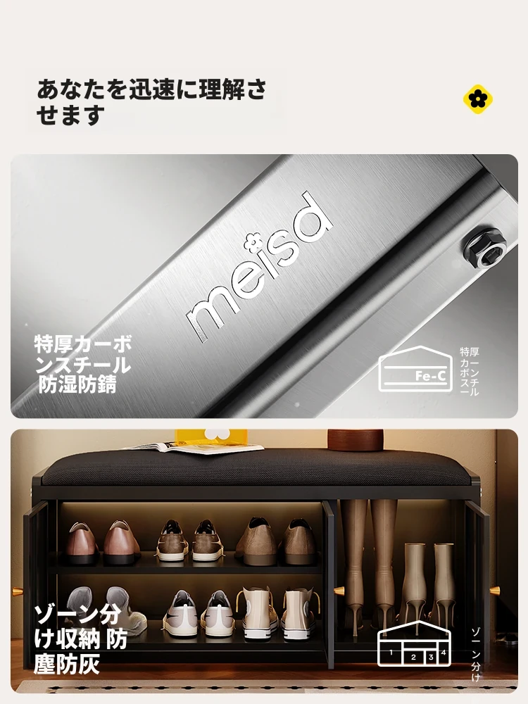 ミセダ 銘品シューズベンチ 家庭用 靴収納付き 靴を履くためのスタイリッシュなベンチ 鋼製デザイン 高級感あふれる収納ソリューション