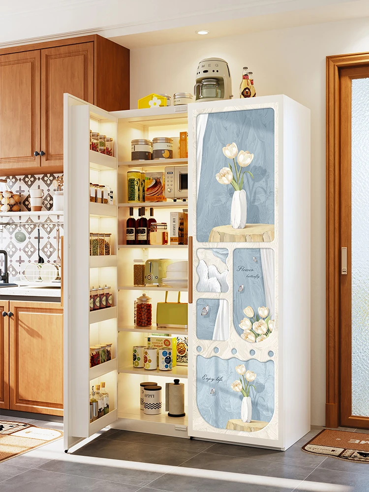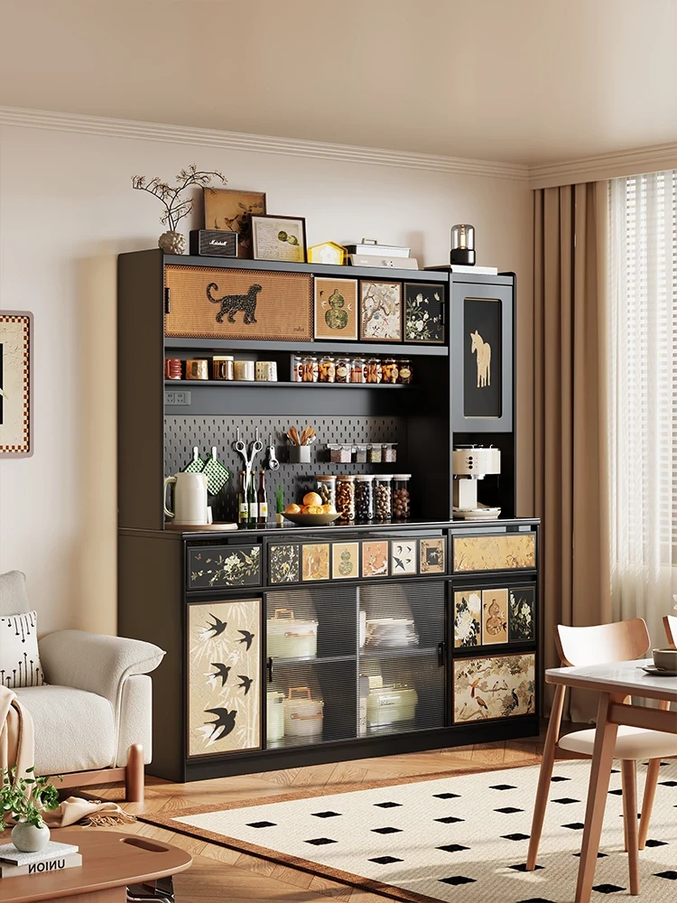 美世达クリーム風味チューリップデザインのカーボンスチール製サイドボード、冷蔵庫ドアスタイルの収納キャビネット、大容量のスナック収納ボックスで、あなたのキッチンをおしゃれに演出!