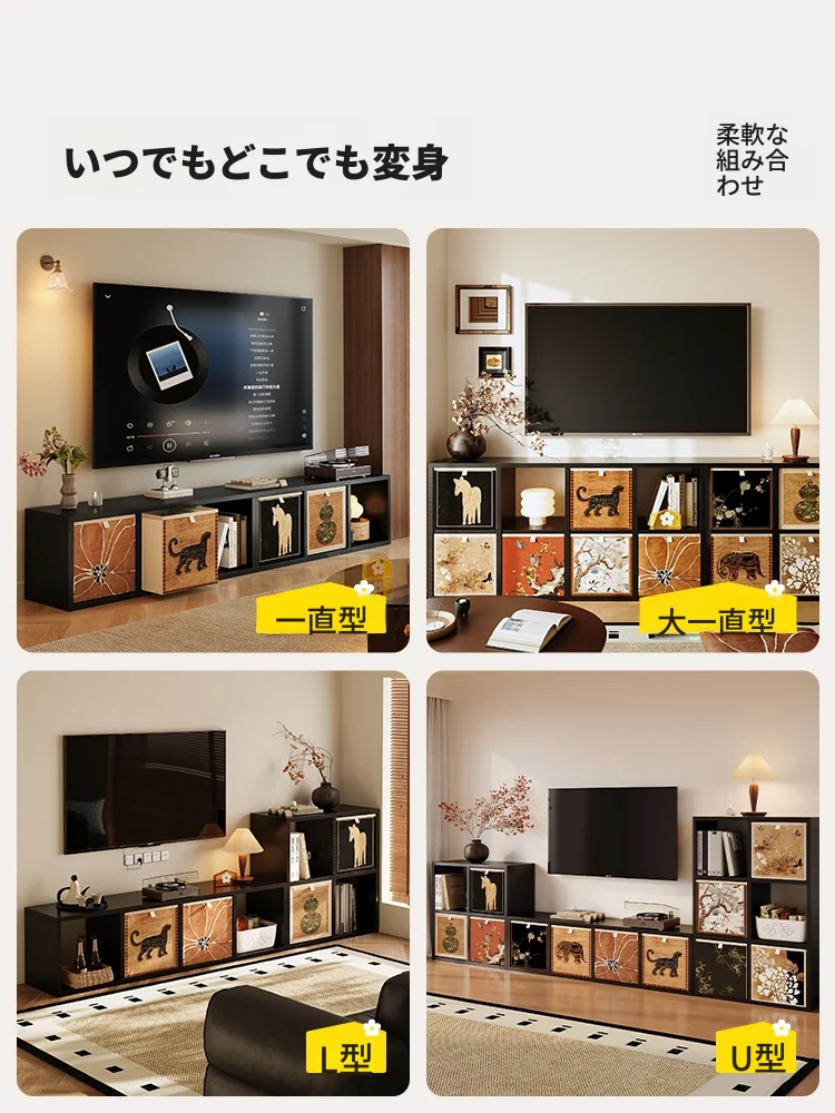 ミセダテレビキャビネット - 中古風のリビング用家具、収納力抜群のテレビ背景壁キャビネット。おしゃれで実用的な一体型収納で、あなたのリビングをスタイリッシュに演出します!