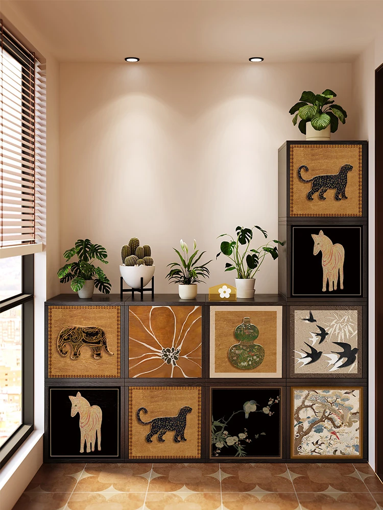 美世达風格の鋼製バルコニー用日除け収納キャビネット - アイアンアートで自由に組み合わせ可能なフロアスタンド式本棚・収納ラック!おしゃれで実用的なインテリアを手に入れよう!