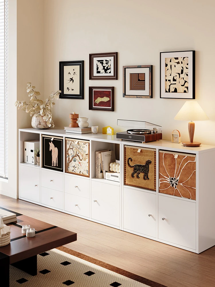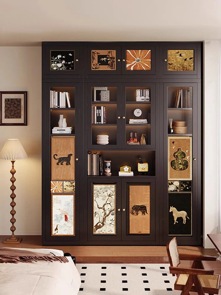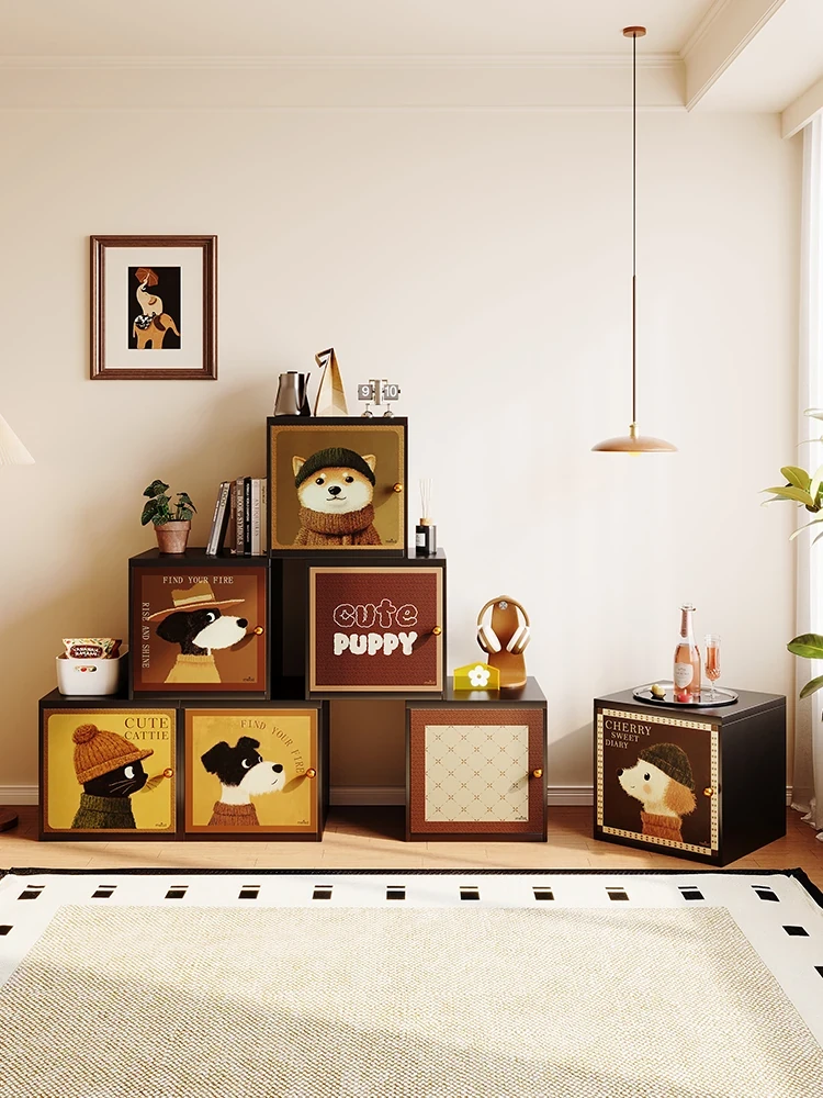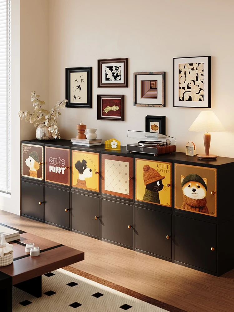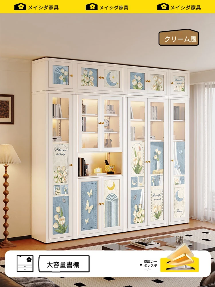 美世达中古風クリームスタイルの自由組み合わせキャビネット、アイアン製ドア付き皮革ブックキャビネット、ショートリビング用ステンレス製ブックシェルフで、スタイリッシュな収納空間を実現!