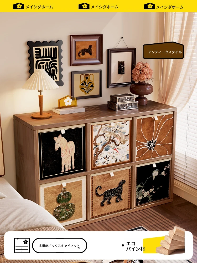 美世达実木ベッドサイドテーブル|家庭用寝室に最適!カラッケ格子収納キャビネット|アンティーク風のおしゃれな自由組み合わせ収納ラック!