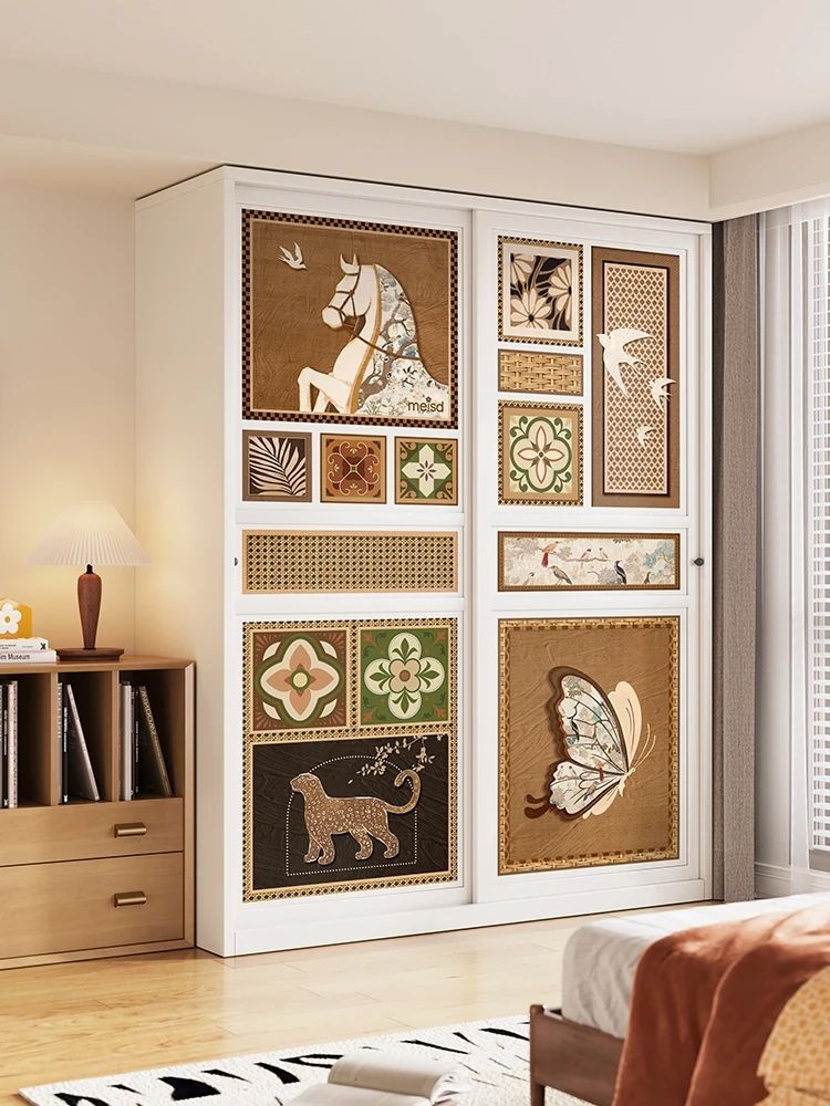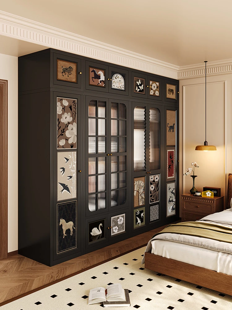 美世达フレンチレトロ引き戸クローゼット - ヴィンテージスタイルのカーボンスチール製組み立て収納キャビネット、ステンレススチール製の寝室クローゼットで、スタイリッシュな収納を実現!