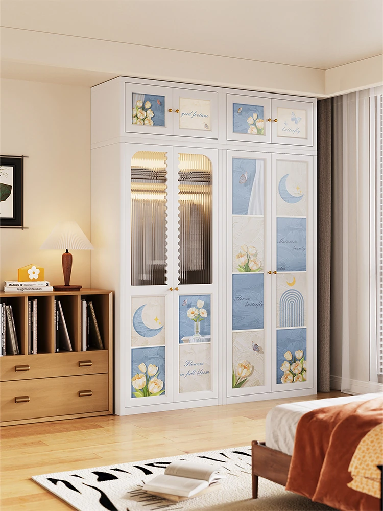 メイシダ レトロコンビネーションクローゼット 家庭用ベッドルーム フレンチアンティークスタイル 衣類収納キャビネット 金属製ステンレス衣装ダンスで、おしゃれな収納を実現!