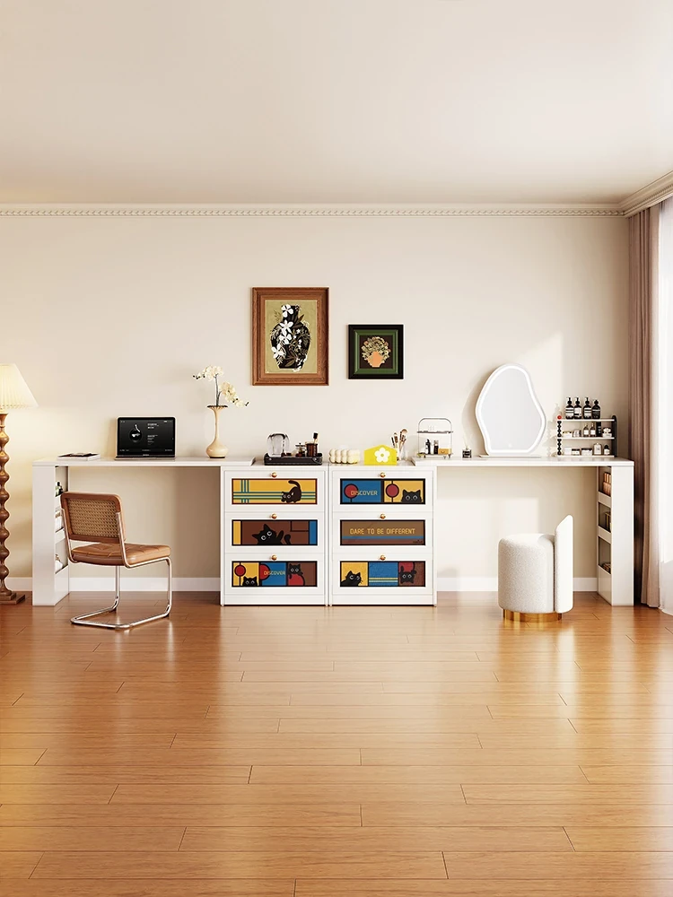 美世达のクリーム風カーボンスチール製ドレッサーデスク一体型、寝室や書斎にぴったり!ベッドサイドにも最適な化粧台収納、2025年新作登場!おしゃれで機能的なスタイルで、あなたの空間をアップグレード!